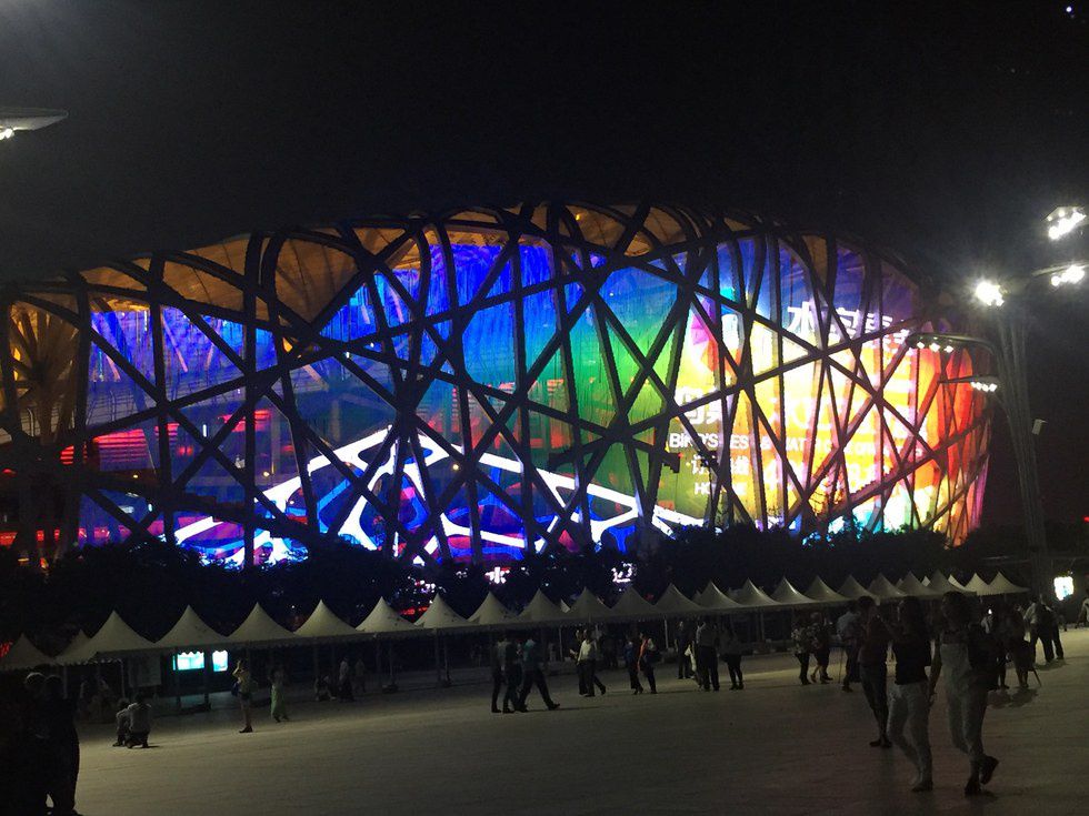 After dinner, we drove to the Olympic Park, home to the Olympic games in 2008. At night, the park looked beautiful with the intricate architecture of the Bird's Nest and the glowing colors of the Water Cube. In the park was a old Taoist temple. In the process of constructing and clearing the land to build the Olympic Green, as the workers were digging around the temple, they dug and found a pit of snakes. They saw the snakes as a sign to not take down the temple and let it remain standing. Beliefs such as the snakes are a part of Chinese culture and beliefs, having much to do with Feng Shui.