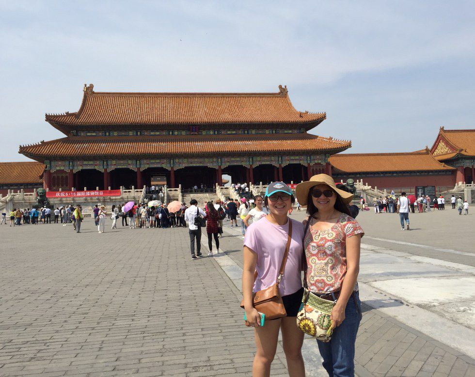 With my mom, outside the gates of the Forbidden City