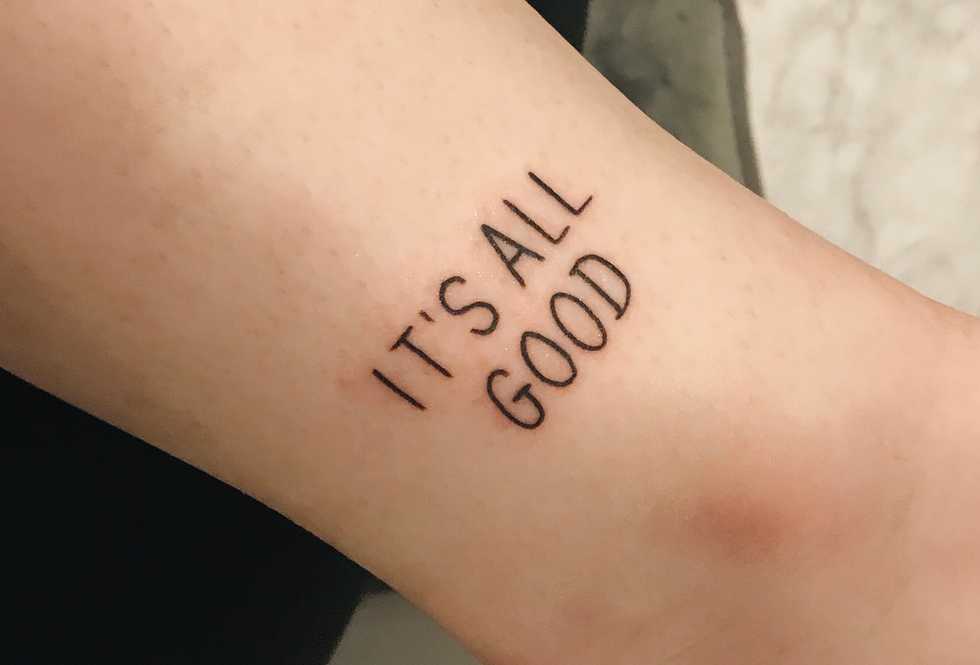 A few days ago, I finally decided to say f*ck it and get one. So, today I got my first tattoo. I didn’t make an appointment because the place I went to took walk-ins and the tattoo I wanted wasn’t abstract or fancy (it simply says “it’s all good” on my ankle).