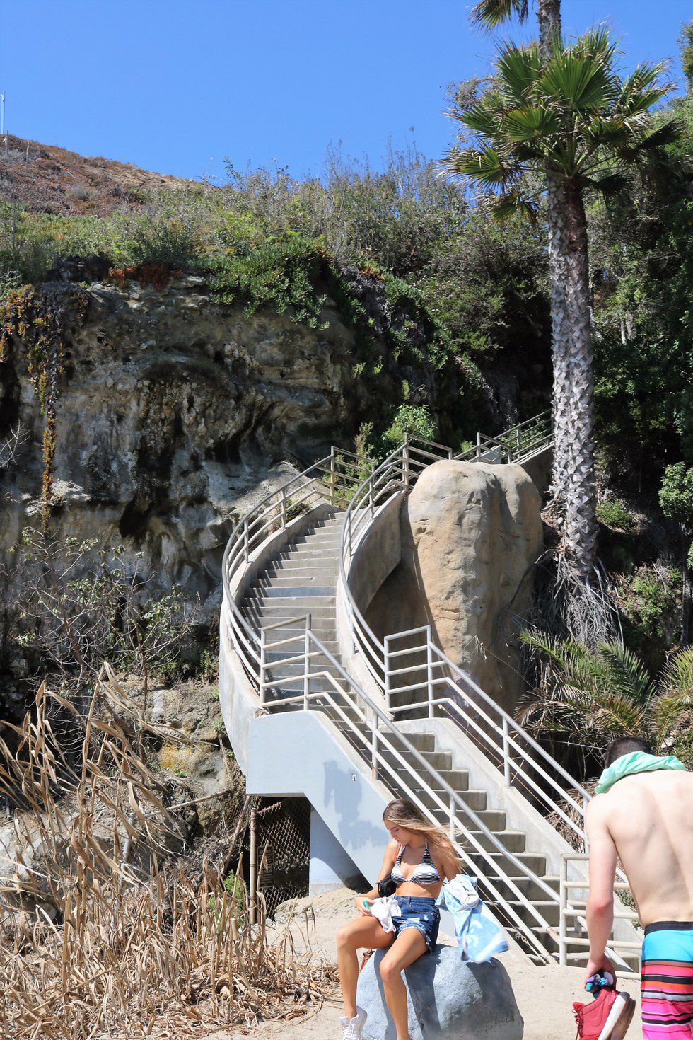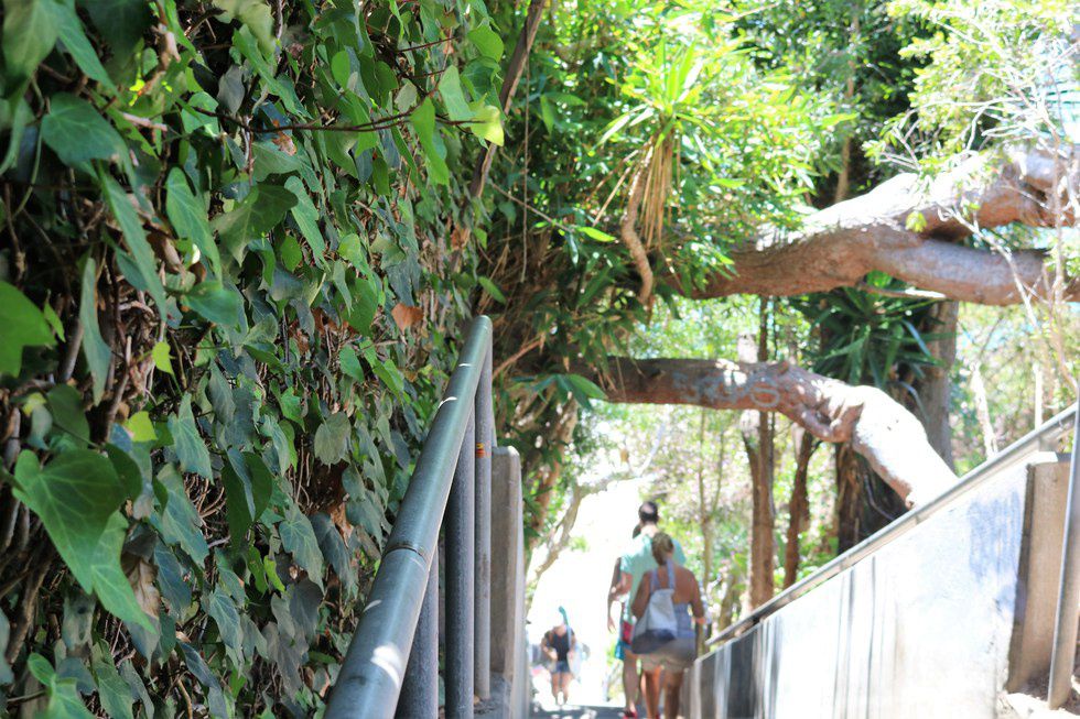 After a couple flights of stairs, the pathway down turned into a very steep dirt walkway.