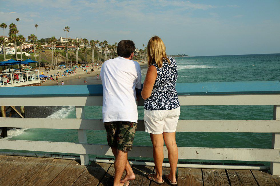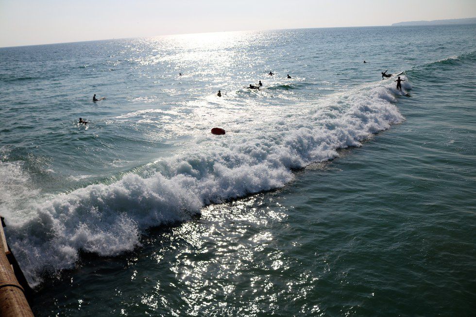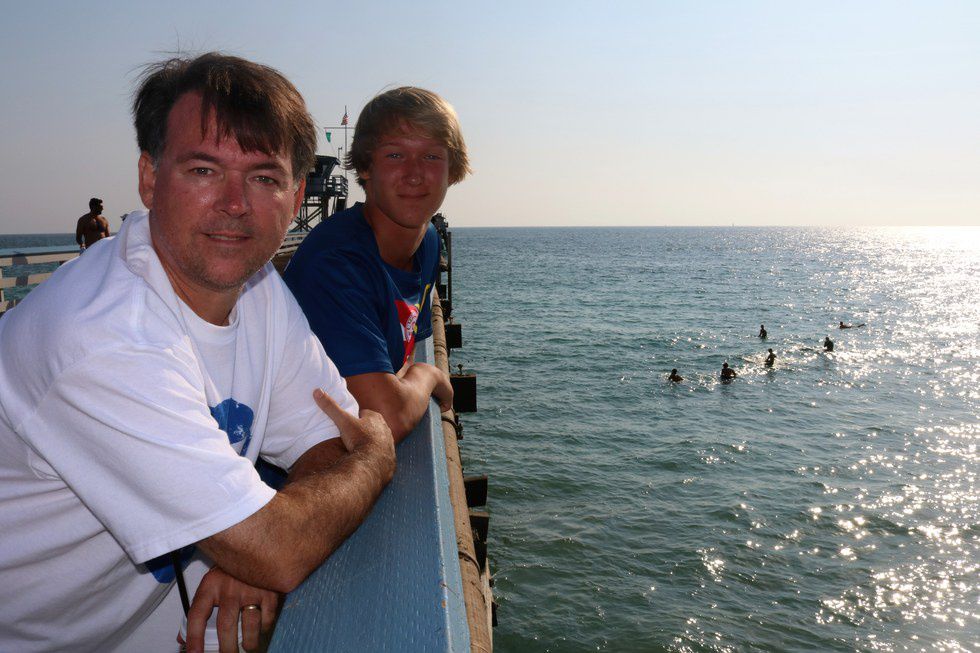 Watching the surfers from the pier.