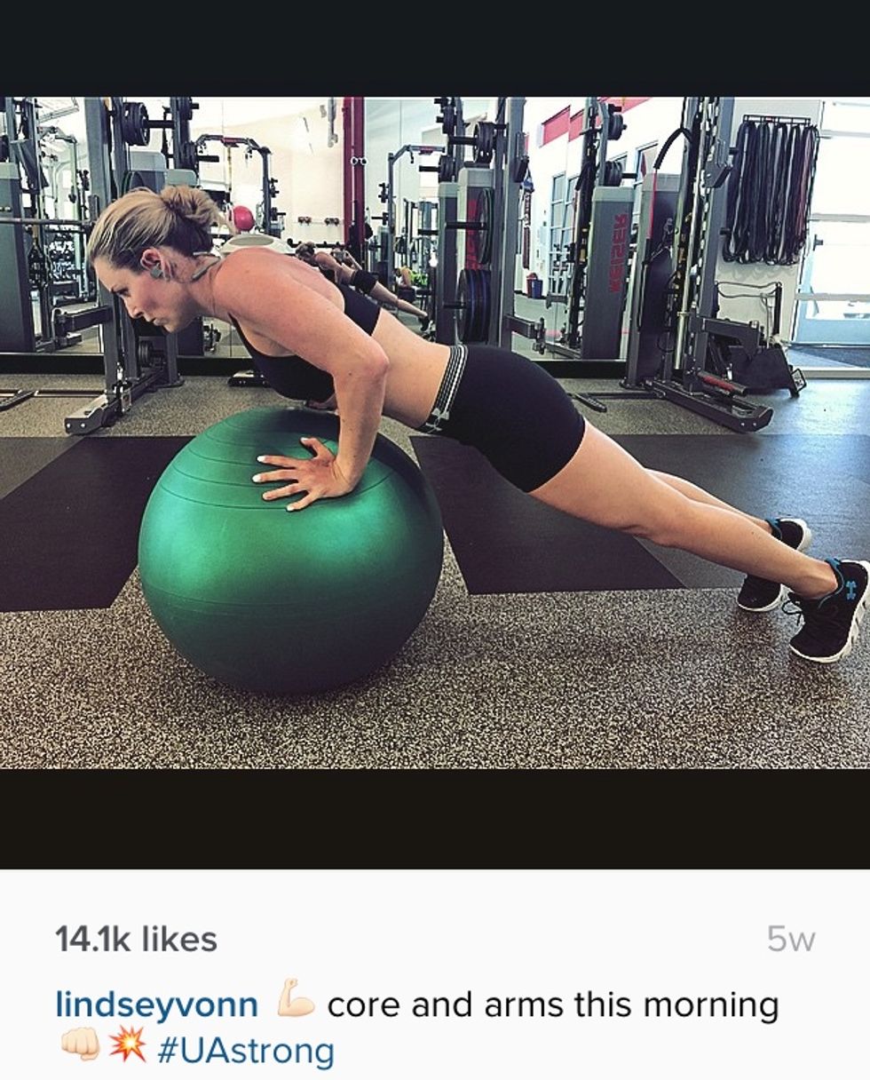 Why settle for one trainer when you can have two? These BAD (beautiful athletic duo) ladies will have you and your best friend pushing each other’s limits. The former University of Washington track stars offer everything from synchronized stair workouts to TRX routines using trees…well, it is Washington after all.4. Lindsey Vonn (@lindseyvonn)