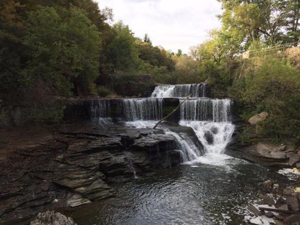 The outlet trail is a peaceful scenic trail that runs along the Keuka Outlet Stream and stretches over seven miles long. The Outlet Trial runs through two towns, Dresden and Penn Yan. The Outlet Trail was once a railroad that travelled between Seneca and Keuka Lake. There are still bits and pieces of history located throughout the trail including buildings, tracks, canal locks, and more. The outlet trail is perfect for an easy hike, bike ride, or a perfect place to fish. The Outlet Trail also has a beautiful large waterfall that makes the trip to the trail well worth visiting.