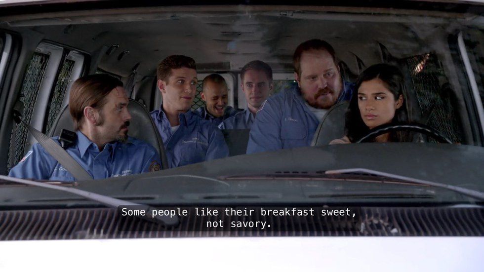 Piscatella’s first instinct was to say she was an armed and violent criminal, which the guards confirm in one way or another under Caputo’s questioning – more of that “brotherhood” mentality, an interesting choice of words considering the many sexual assaults that take place in fraternities. Caputo tells Piscatella to go home for even considering twisting the story like that, only to realize that is exactly what MCC wants – someone to blame. They find their “villain” in Bayley, pinned up as an undertrained CO who was loose cannon (despite the numerous attempts he makes throughout the show to help the inmates). However, Caputo goes off MCC script during a press conference and calls Bayley a victim of circumstance, who is filled with remorse and horror at his actions while also receiving sympathetic flashbacks in the last episode “Toast Can’t Never Be Bread Again.” He is as heavily humanized as Poussey, and realizing that Bayley was briefly arrested and Poussey was charged for the same activity (trespassing and intent to sell) - and yet, their two lives go in very different directions, with one ending much before it's time.