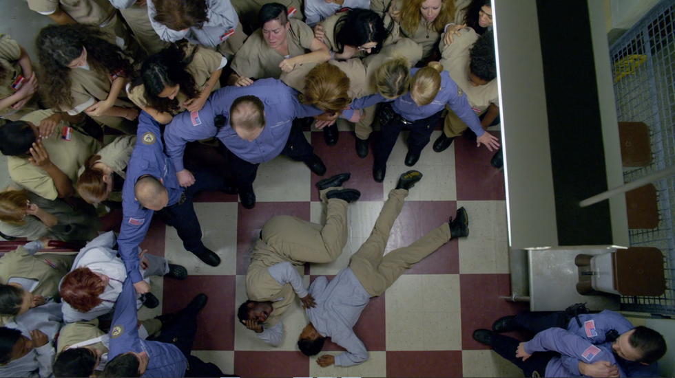 This season truly is action-packed: from Nichols’ vicious drug cycle, maxi pads seen as “inessential” in medical, Lolly’s trip to psych and Healy’s subsequent mental institution, a collection of new backstories (Lolly, Maritza, Flores, more on Suzanne and Healy), Alex’s murder of friend/hitman Ayden — and for some reason, the audience is continually hit over the head over and over by rising white supremacy within Litchfield's walls.