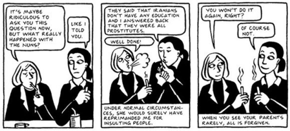 If you think graphic novels are just for your little brother's friends who hate to read, you should probably just go back to high school. "Persepolis" is the coming of age story of Satrapi's childhood in Iran during the Islamic Revolution. It is the story of love and terror and home. Satrapi's family does everything for her, and (like most teenagers) she often has a hard time accepting this unlimited love. Put the bratty teenager behind you while you read this book. There is a movie version of it as well, which is just as good, and includes this brilliant scene, but I'm biased and think that everyone should read a comic book or two, so check this out of your library if you're too cheap. This is one you're gonna want on your shelves.