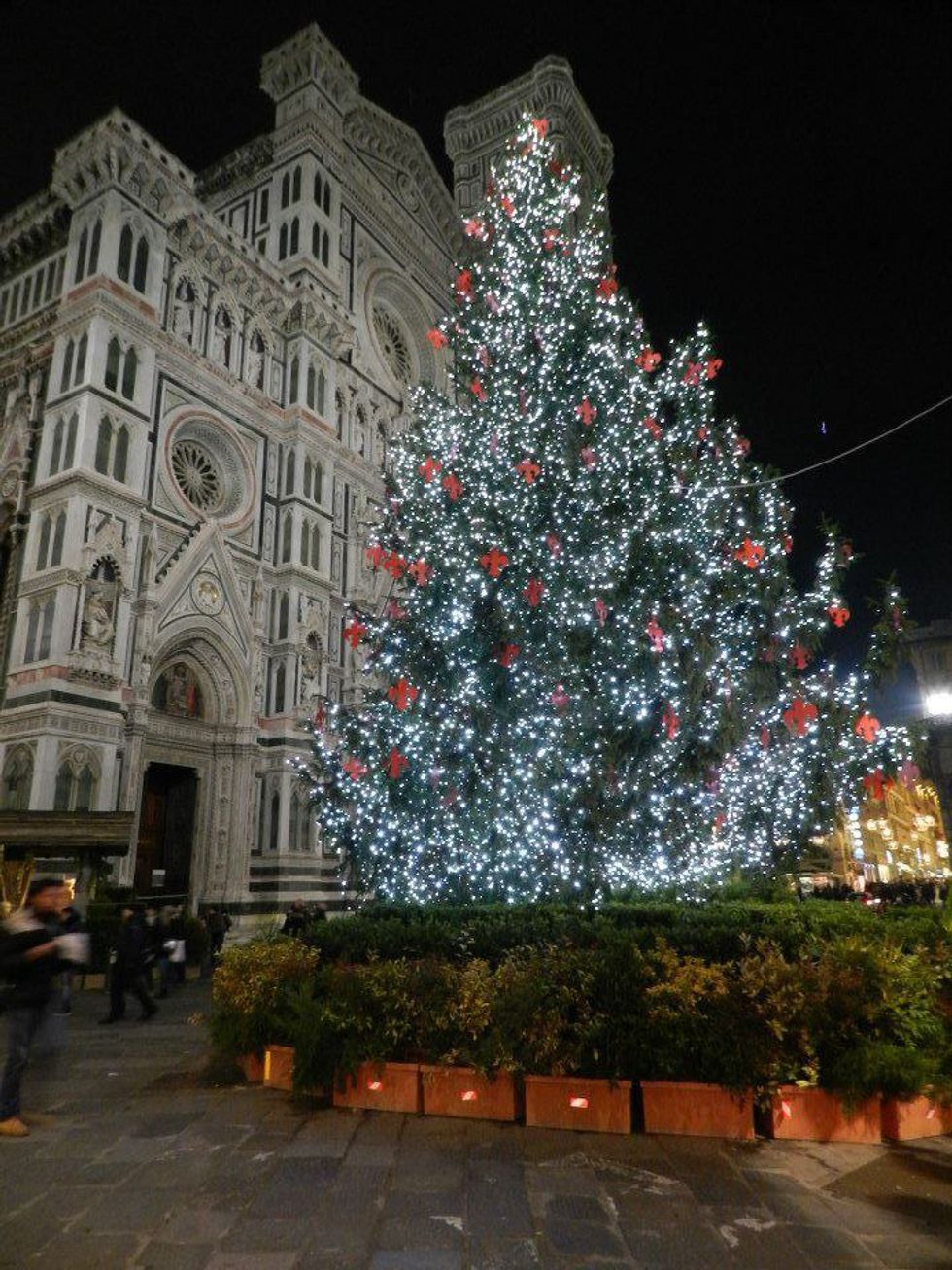 Next to the Duomo, in the old city center, is a large Christmas tree decorated with red fleur-de-lis (or giglio in Italian), the city's flower, and a simultaneously simple and grand nativity set, showing that they do not forget the true meaning of Christmas.