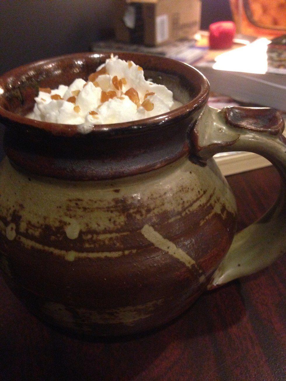 This cup of coffee is undoubtedly, inarguably, genuinely pretty. The mug is just the right shape, just the right size, in cozy-December-afternoon colors (because it was a December afternoon of course). And whipped cream and caramel shavings are classically attractive on coffee. I drank this while studying on a dreary November day and sent a picture to my Dad. And the afternoon was no longer dreary.