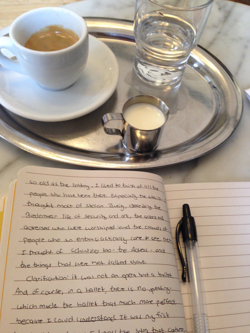 Often, traveling is taking in more information than you can possibly process, moving from place to place quickly and constantly. I found a cafe on this cloudy day in Vienna to pour out all I had seen and thought into my journal. I sat at my own tiny table and sipped the strongest, smoothest espresso I had ever had out of a lovely, tiny cup. (Note the even tinier, cuter cup for milk).