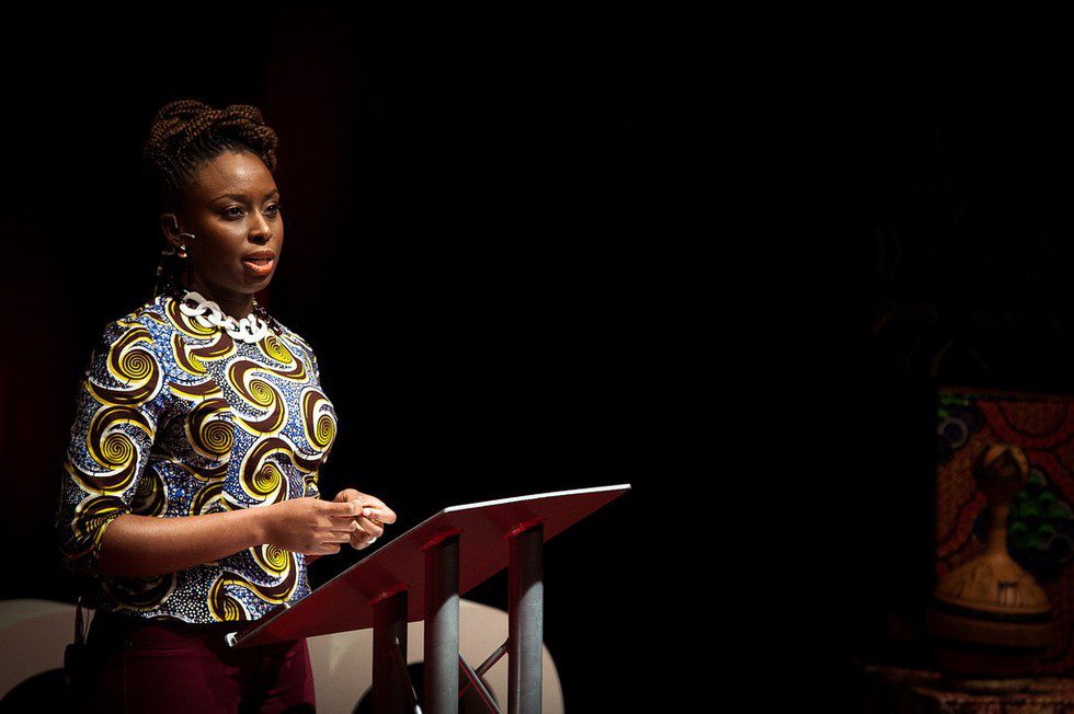 Chimamanda Ngozi Adichie delivering her iconic "We Should All Be Feminists" Ted Talk