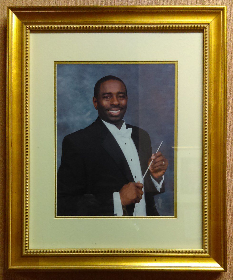 Dedicated on both sides of the hallway leading to CSU's Department of Art's computer labs, in gold frames and personal bios beneath, the National High School Band Directors Hall of Fame has 53 members, five of which are of African-American descent.