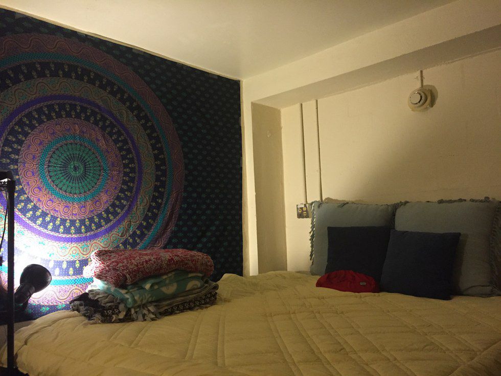 This was in an early stage of decorating my room, but I just put the tapestry up, and it was finally coming together.