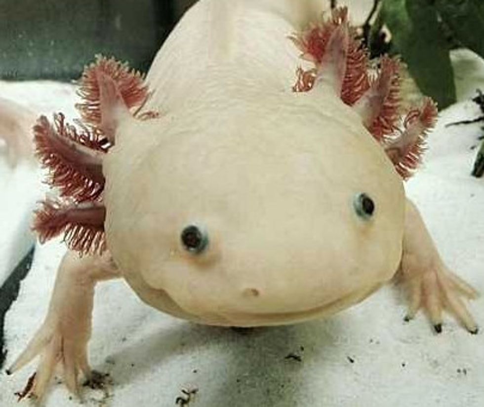 More commonly known as the axolotl or the Mexican walking fish. These creatures look a little bit like aliens. Axolotls are actually a type of salamander that never undergo metamorphosis. They are extremely cute, which is why they are my favorite model organism of all time. However, the reason that scientists study these creatures is for their amazing ability to regenerate limbs after amputation.