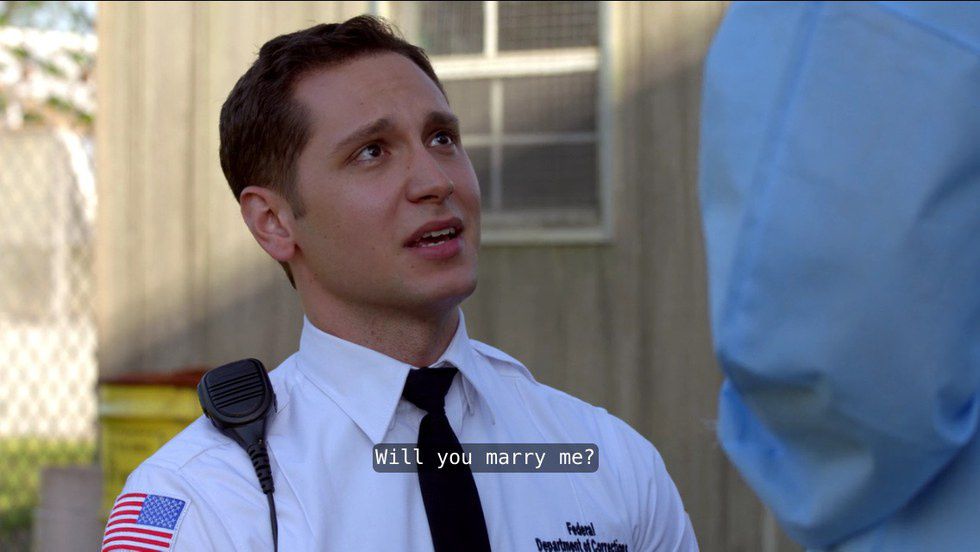 The season’s second episode ended with a shocking conclusion, as one of Litchfield's favorite couples broke up. In the beginning of the episode, Bennett proposed to Daya at “their place,” saying how he would always love her, and they’ll “find so much happiness, we won’t know what to do with it.” Promising a good and happy future for their baby, Bennett risked everything for Daya and their child. ... Until he met Daya’s family, and learned what he was marrying into. The family was welcoming to him, but was not what Bennett wanted. A flawed family with not much money and a lot of drugs and fighting — Bennett ran. The episode ends with Bennett crying in his car, then driving off into the sunset leaving the crib Daya’s family gifted to him on the side of the road. Weeks passed with Daya waiting for Bennett to return back to work, until she found out that he left his position for good. With no way to reach him, Daya was left hopeless and alone ... and eight months pregnant.