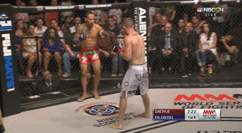 When a fighter has an undefeated record, there is obviously something special present, some factor that puts them above all the rest. Justin Gaethje is one such fighter. The current World Series of Fighting (WSOF) lightweight champion, Gaethje has both an undefeated amateur and professional MMA record of 15-0 (7-0 amateur). He is an extremely versatile fighter, whose background may be in collegiate wrestling, but 12 of his 15 wins have come by knockout. What helps Gaethje to stand out is not his fight intelligence, but his fight instincts; he is able to improvise and react on his feet in a way no other fighter can. This incredible ability to just "fight" without considering his next move, combined with constant pressuring, makes him a dangerous opponent that is in the prime of his career and is constantly moving forward. Watch this gif breakdown of Gaethje knocking down Luis Palomino (24-12).