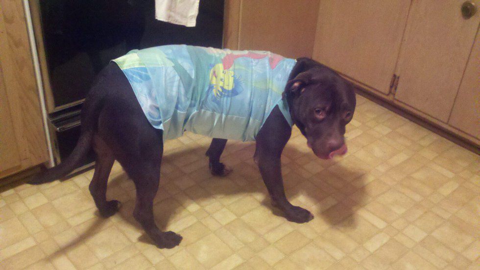 Thinking about putting our human clothes on our 95-pound dog is always something to laugh about. But my family really did do it. I grew up with a little sister, so our dog was constantly getting clothes put on going from Little Mermaid pajamas to a sweatshirt and jean shorts.