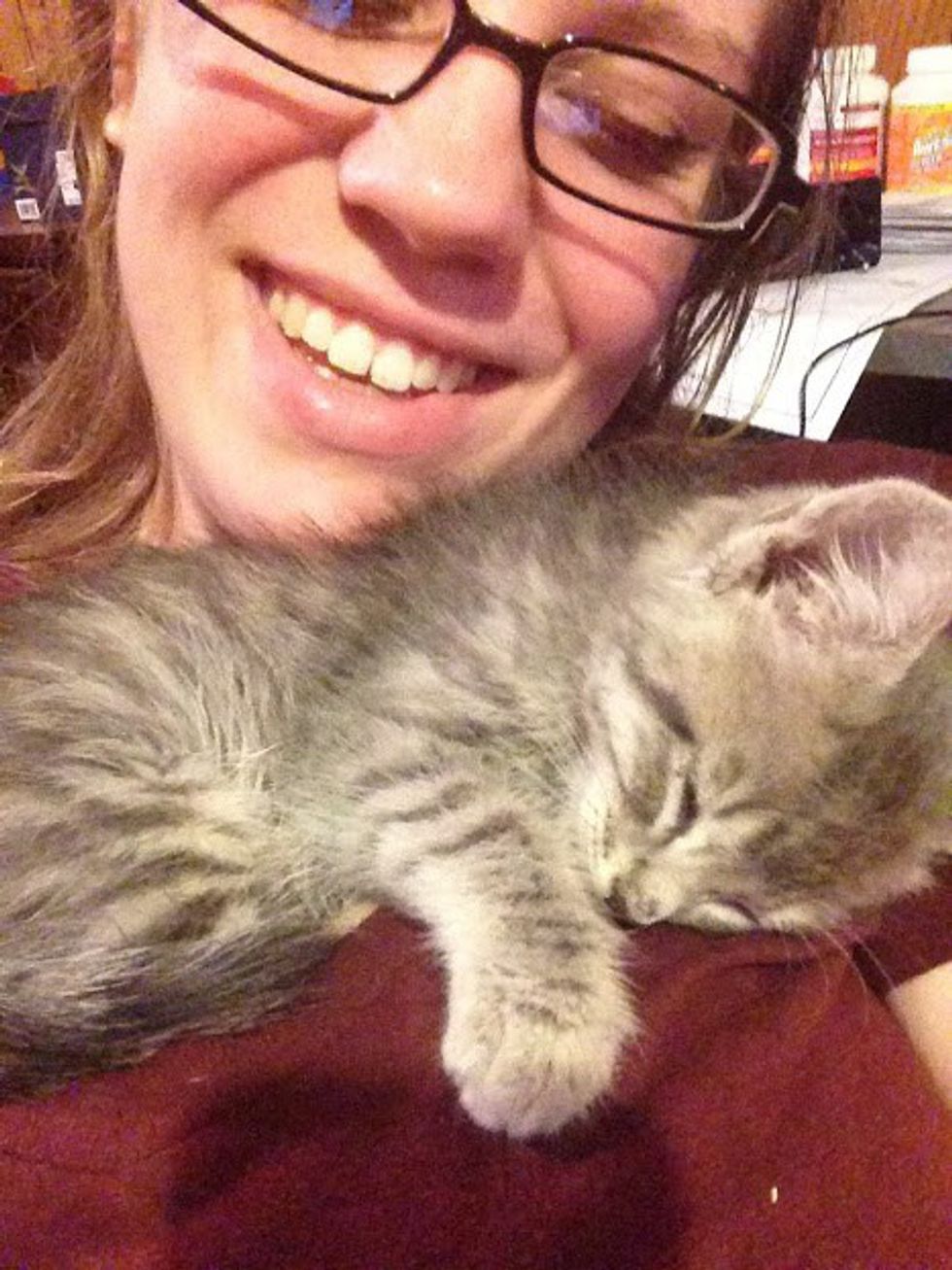 Most kitties love to snuggle, and they'll snuggle with you anywhere. Because they're so small, they don't take up too much space when they snuggle you. And you can always tell how happy they are because they love to purr. It's especially special when a cat chooses to snuggle with you, because they're independent so it tends to be on their watch.