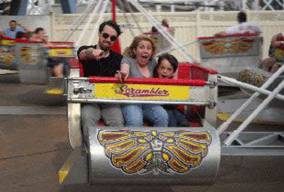 Another awesome ride is the Scrambler. Each ride machine holds up to three people, with the shortest person going in first and then the tallest person. Once the ride starts, riders are spun in all different directions super fast (don't worry, not throw-up-fast!). What I like about the ride other than the spinning is that it is unlike other rides I've been on.