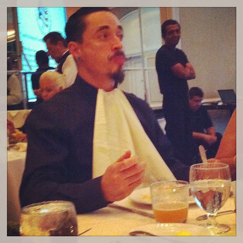 Now, if you were the physically superior one in your relationship, it's time to dine. Might as well keep things romantic by using some plates and bibs. Bon appetite!