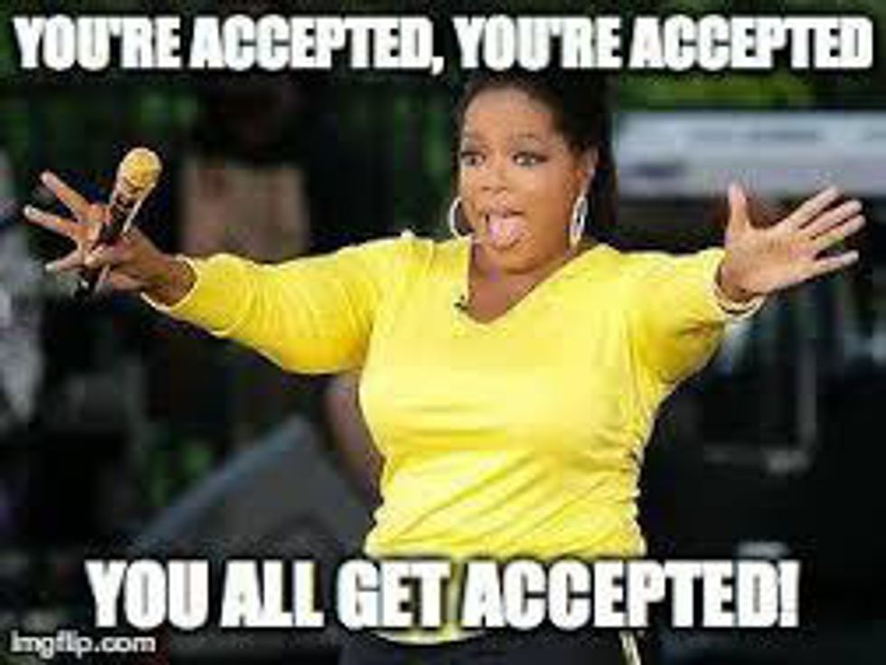 So for starters, here we have the OH MY GOD I ACTUALLY GOT ACCEPTED TO COLLEGE meme. Yep, Oprah hasn't let us down with this beauty that's for sure! Plus, the feeling of actually being accepted to college is kinda nice, until you have the feelings that follow in the next four years.