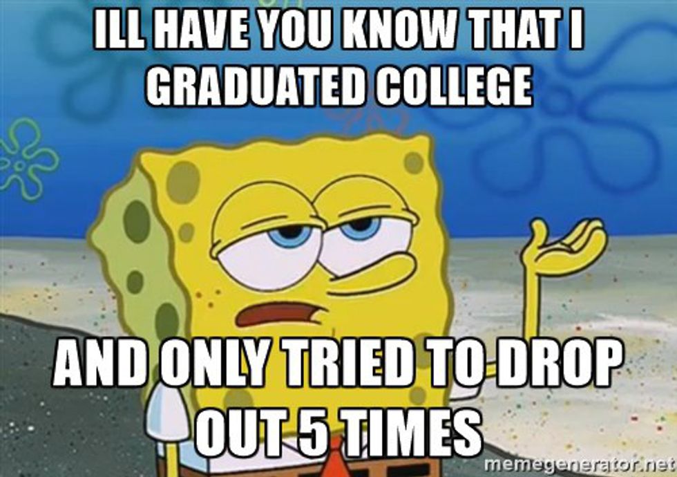 And finally, after a long night of partying, you wake up with that awful hangover, and wonder what in the hell you're doing with your life. At this point, you have a mini teenage crisis, and contemplate on the meaning of your life and wonder if college is ever going to actually help you in the real world (side note: It does, so suck it up), and then comes the famous feelings of dropping out.