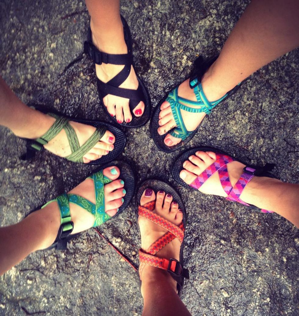 oversized t-shirt, Chacos, norts and Aviators, the sorority girl has a style