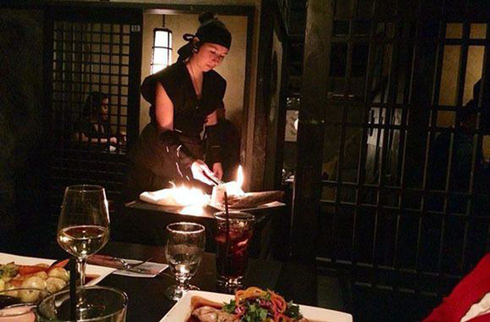 This fun japanese restaurant is designed to look like a feudal ninja village. The entire restaurant is setup like a maze with individual rooms for each table. Entrees included teriyaki salmon and mango salmon rolls. The restaurant also has a vegetarian menu and many different types of sake.