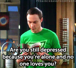Going along with the previous image, this famous Sheldon line is one that I know all too much about. I have a lot of sympathy when someone is in a time of need, but I can also be extremely apathetic. It's not that I don't care about others in terms of their feelings, or events taking place in their lives, but in my head things typically sound less bad than they do out loud.