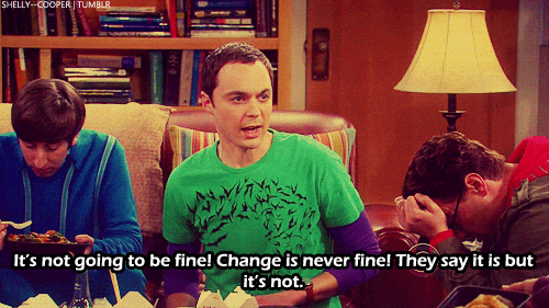 The last necessary bit of information about myself is that I don't like change. My room hasn't been moved around in six years because I do not like the idea that I might trip over something that I forgot I moved when I get up to use the bathroom at night. The reason for this is due to my anxiety, which is almost as bad as Sheldon Cooper's OCD that is portrayed throughout this series.