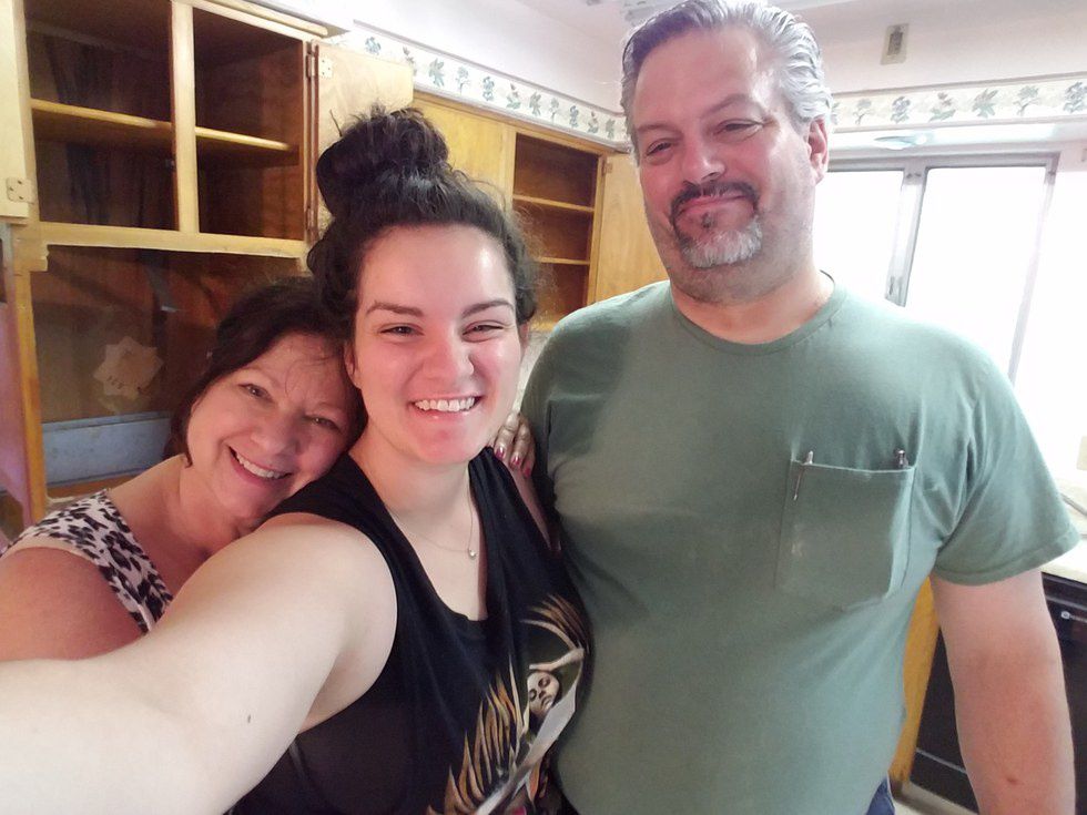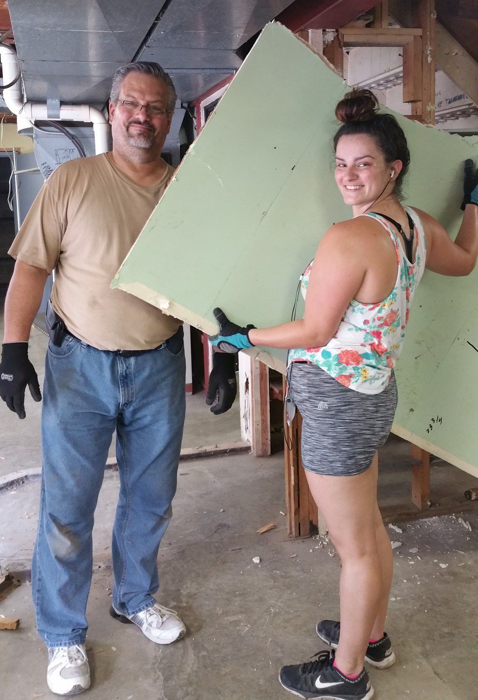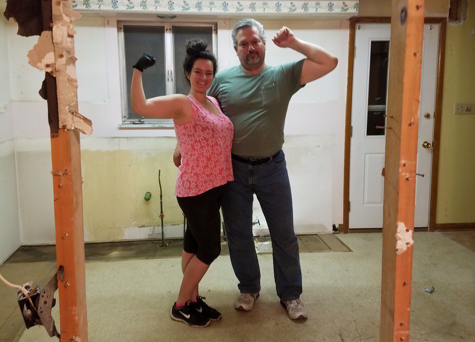 My first demo day! I helped my dad knock out kitchen cabinets and then forced him to take a picture for my Instagram. He wasn't too amused, but he complied.