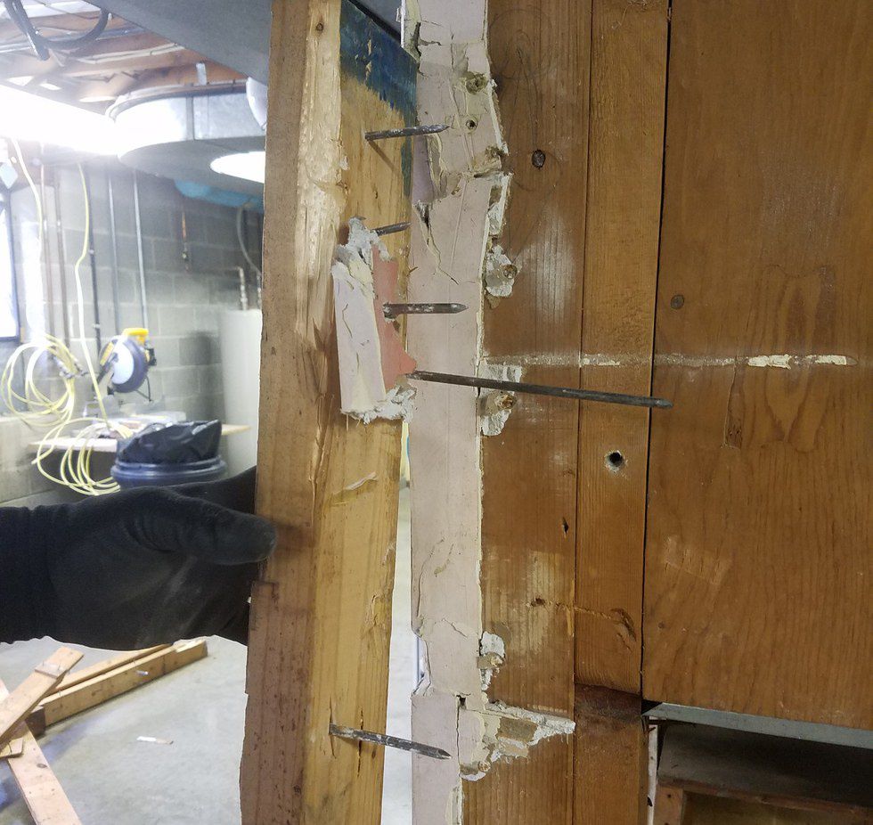 We are all pretty sure the previous owners of the house were preparing for some kind of apocalypse. If you were curious, the nail is nine inches long and was part of a basement closet. However, we found nine inch nails and sheet metal almost everywhere.