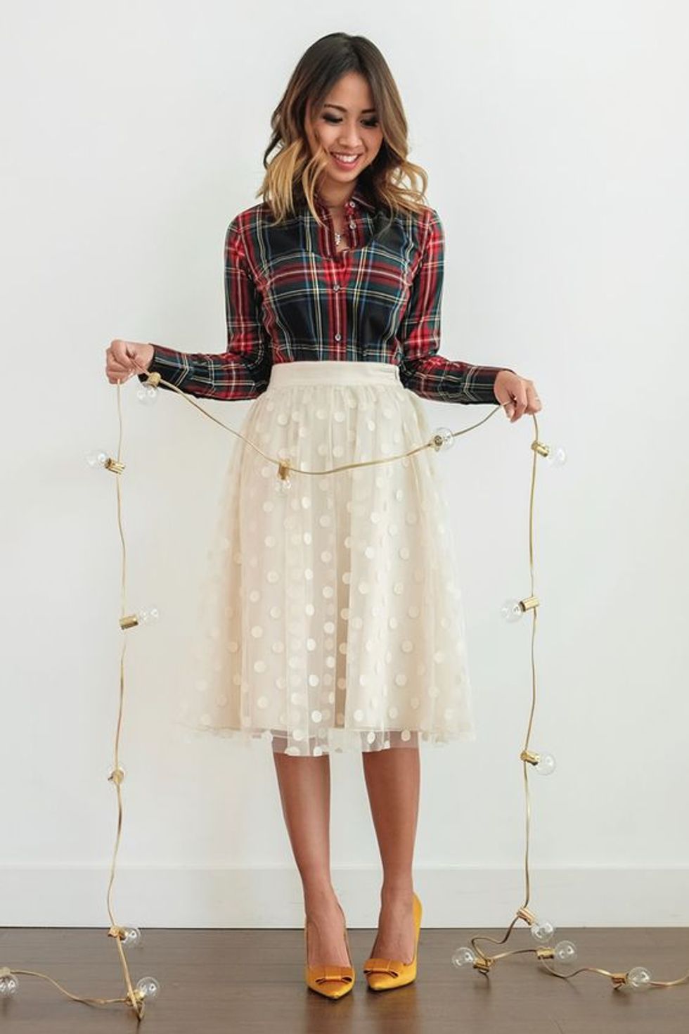 Taking a simple plaid shirt and adding it to a festive holiday outfit can help bring your style to the next level of reinventing a style!