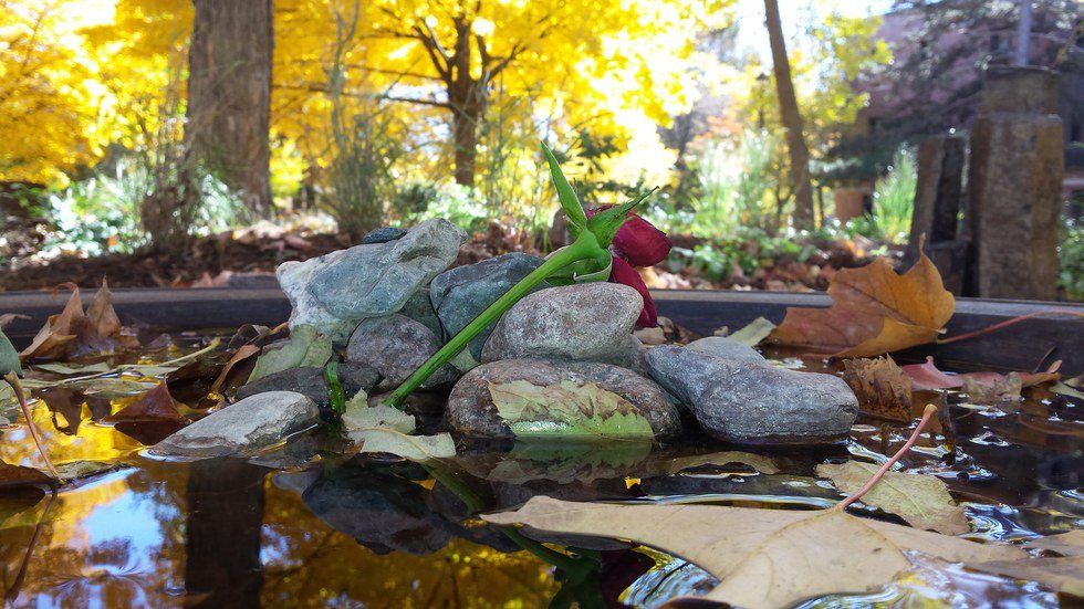 They took the meditation labyrinth. A guy and a girl, both sporting college apparel, lounging against the rocks in the middle, believing they are secluded. A whole winding pathway separates them from the world, though in reality their paradise island is completely visible from a bench just fifty feet away.