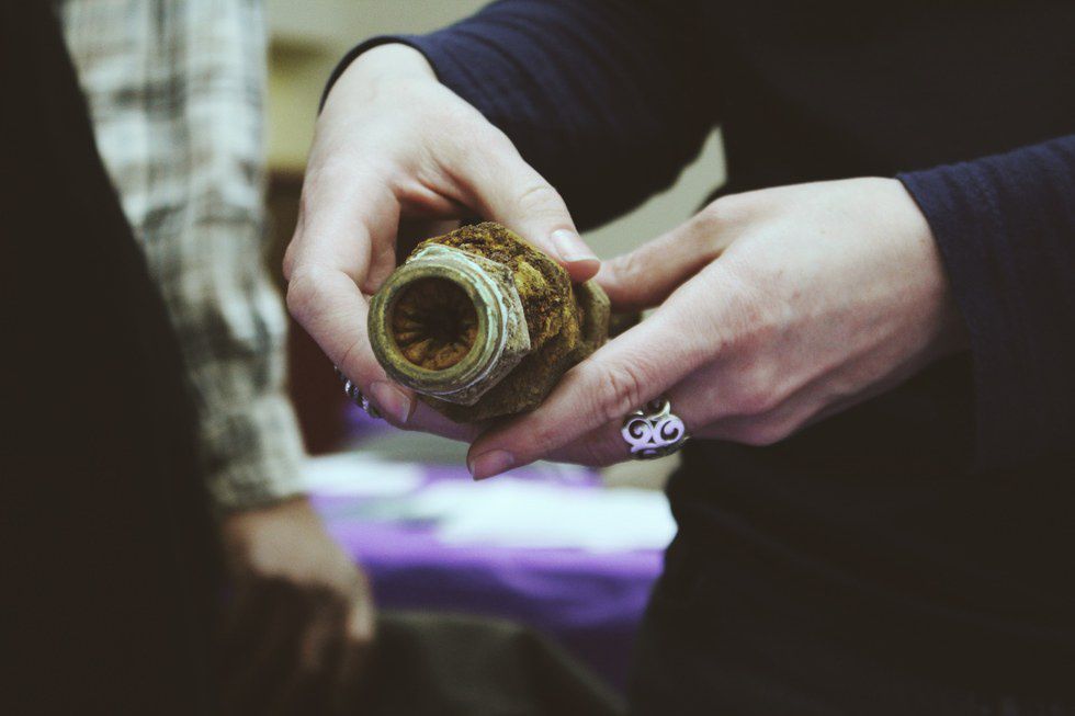 Members of the EPA show a sample of the pipes that are poisoning the water.