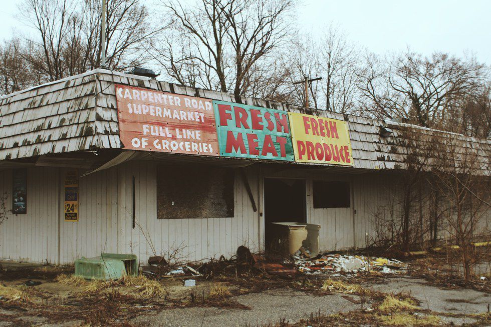 Flint residents have been told that eating leafy greens and fresh produce will counteract the lead poisoning, however, this image represents most of the local businesses and grocery stores where you can purchase said items.