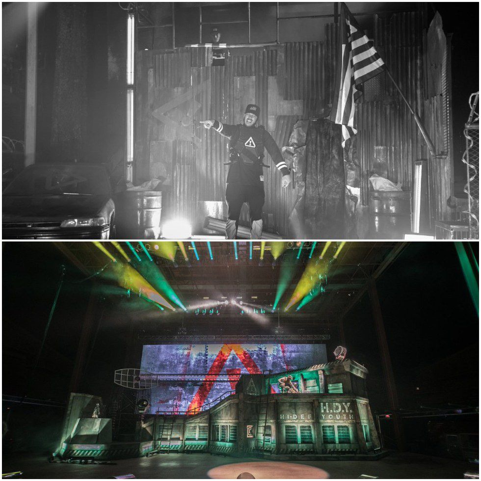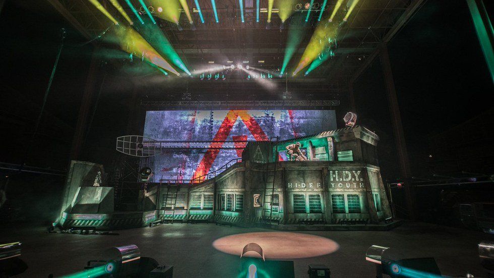Floss has been killing the EDM stage production game since 2014 with their HYDNATION tour which came equipped with a junk-yard apocalyptic stage production. This time around, the duo (Autobot and J2K) proved they could create a bigger, badder set for the Hi-Def Youth Tour -- The Bunker, a moving 40x15-foot military bunker replica complete with a t-shirt cannon, steel satellite, and spotlights.