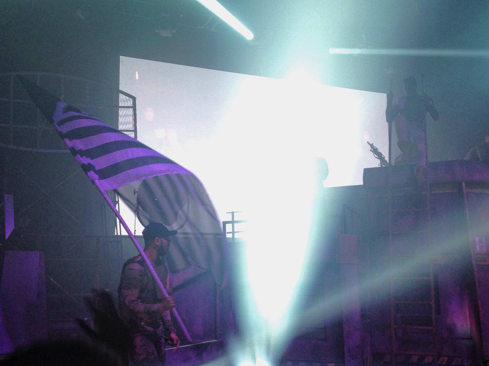 I caught their Friday show and saw the Bunker in all its glory for the second time (The Bunker also made an appearance at Panorama Festival this past July). The show took place at Brooklyn Hangar, a warehouse venue with 13,000+ square feet of space. Surprisingly, the venue wasn't as packed as I anticipated and it was relatively easy to navigate to the front barricade which was only a few feet away from the stage. Floss got the crowd going with originals like M.F.U. and PILLZ and continued to heat things up throughout thenight with fan-favorites such as Mosh Pit, Prison Riot and Lighters Up. The night was full of trap beats, but not 100%. Floss made sure to play non-trap tracks like Ookay's Thief, Yeezy's All of the Lights, Flux Pavilion's I Can't Stop and Galantis' U & I.