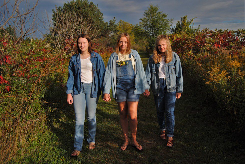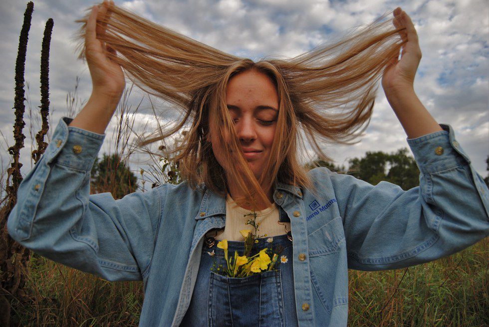 My inspiration for this shoot is located on 8301 N. McKinley Road, otherwise known as the Flushing Township Nature Park. It has trails that seem to endlessly weave through a vast, lush landscape. Open fields, forests, and a river, it truly is a photogenic location. The beauty of it all has this unexplainable isolating effect, even though it is a meager ten minutes from downtown Flushing. A man I met the day of the shoot said "this place has an energy all its own." I woke my friends at sunrise, yes, even on a Saturday, to have the best light possible. I wanted to use the the early morning sun to bring a warm tone to these images. However, it was unexpectedly cloudy, which ultimately gave these photos a dreamy, soft look. My main goal for this shoot was to embrace the natural beauty and color of this park. On the brink of autumn, the leaves and plants were rich with vibrant colors, mainly deep reds and bright yellows. I was also longing to do this shoot featuring all denim clothing to accompany the natural, raw vibe of the environment. The parallel created between the natural look of my friends and the natural beauty of the environment is what makes these photos powerful. Even though many people don't know about this hidden gem, everyone we encountered this day seemed to be in a state of peace and happiness while enjoying the trails.