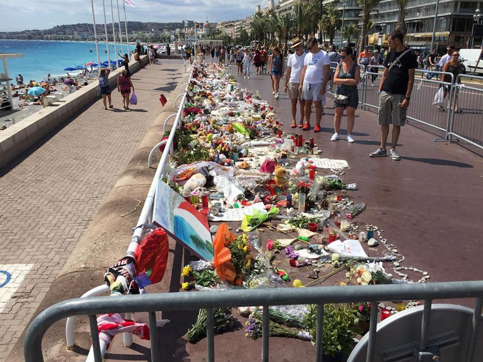 Our last stop was in Ville France Sur-Mer. Ville France Sur-Mer is a tiny suburb of Nice. This is the memorial in Nice after the terrible terrorist attack that happened during France's 4th of July. Nice is so beautiful; it is really hard to imagine that something like a terrorist attack could happen. This memorial is a dabber reminder how all of us are affected by this. Hopefully things like this will be a thing of the past as we figure out a way to keep everyone safe.