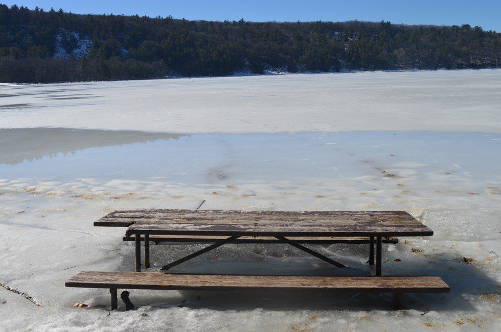 This table is right where it belongs. It doesn’t belong in a frozen lake, though. It looks and feels like it’s not in the right place right now, in this frozen moment. However, it’s in just the right place. In the Spring, the ice will melt and the table will be on dry land again. The table just needs to persist and wait out this season and then everything will be the way that it should be.