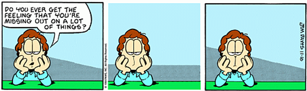 FOMO stands for fear of missing out, and i feel it like crazy. College is cool, but when you aren't totally in love with your school, it gets a lot easier to feel like you're missing out. For me, I feel it a lot with my friends who are at home still hanging out and making plans. I feel it with my family having family dinners and me not being there.