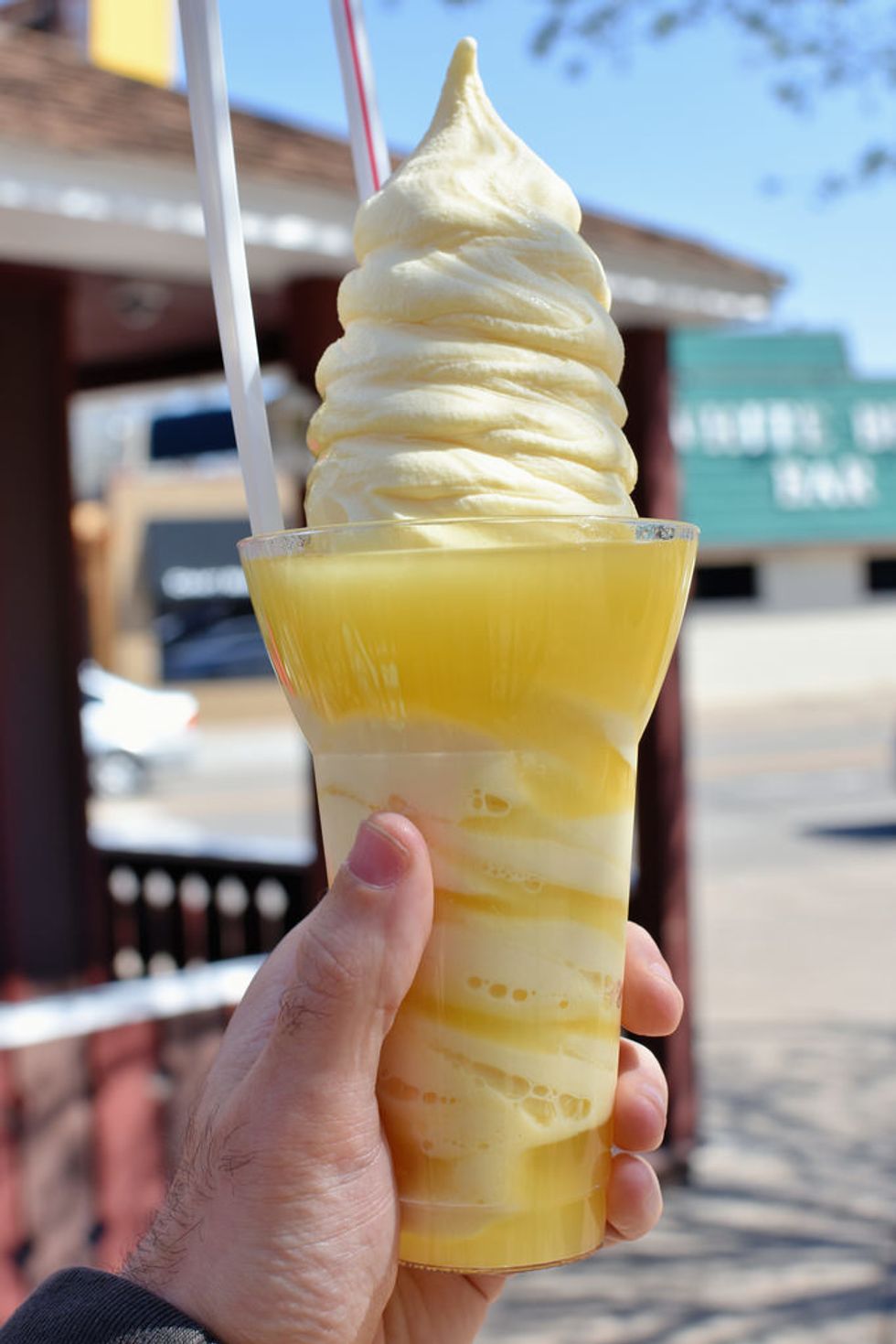 This tropical frozen treat is among the most popular in Disney World. The Dole Whip is a dairy free, frozen, pineapple soft serve that makes you feel like you're in paradise with its refreshing flavor especially in the heat of Florida! You can opt to have it either plain in a cup or you can make it a float with Dole pineapple juice as pictured above. This delicious snack can be found at Aloha Isle in Adventureland in Disney World and the Tiki Juice Bar in Adventureland in Disneyland.