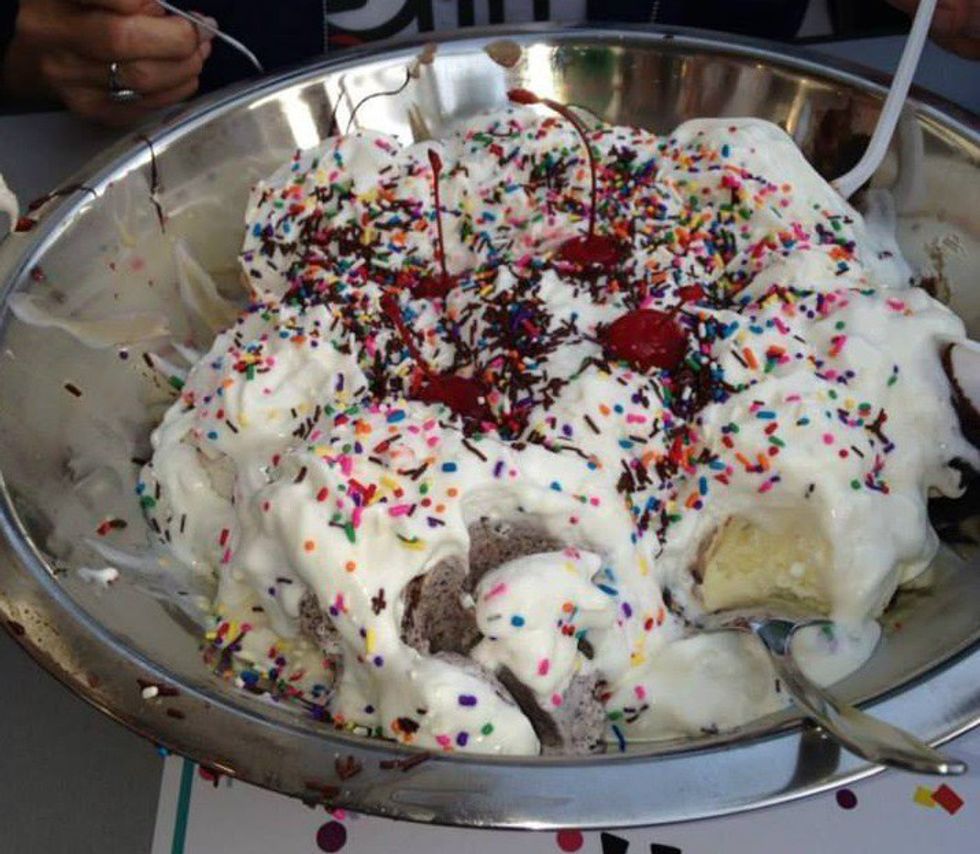 Enjoy 15 scoops of creamy goodness with sprinkles and cherries on top! If you can complete it in under 30 minutes, you'll have this delicious dessert for free, with your name listed on the wall of fame!