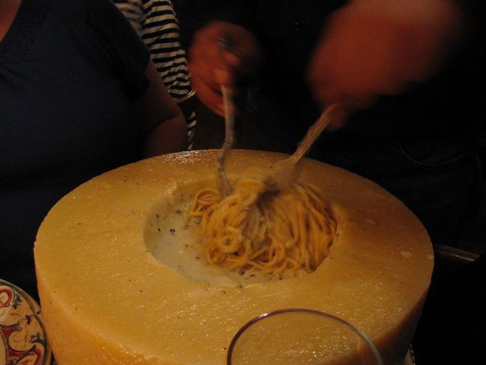 Tonnarelli cacio e pepe tossed in pecorino cheese—a whole wheel of pecorino cheese, tossed tableside and transferred onto your plate in front of your eyes. It’s almost a placebo effect of seeing so much cheese that it’s like you get to eat all of it with your pasta. The pan they use to coat the noodles is actually the cheese wheel. So much cheese, so little time.