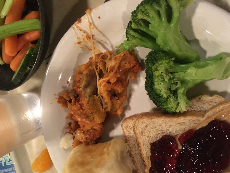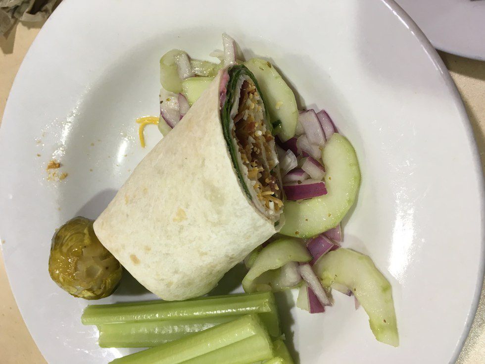 Okay I am going to be honest and say that for both lunch and dinner, Friday was lacking in adventure. For lunch, I ate a Mediterranean wrap but after I took the first bite, I realized that what I was eating was not very new to me except the cranberry spread. But when I look to where I was four years ago, I realize that if I had seen a wrap with that spread and the onions surrounding the plate, I would have not eaten that meal. That being said, I have come so far from where I used to be and I can eat a wrap that may have some unfamiliar aspects to it. The other food I tried was a nibble of a Brussel sprout and just like the broccoli, I was not a huge fan. I guess certain green foods just don’t taste very good to me. My rating: 6/10 would eat the wrap again and would probably give the Brussel sprouts another chance as well… maybe.