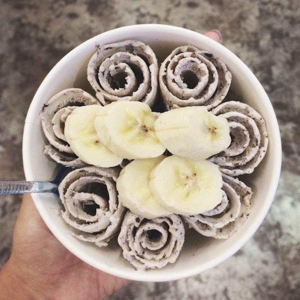 Rolled Ice Cream is one of the only food trends i haven't tried, and i am still mourning for my tastebuds. but that phase has shipped and sailed. it started on Instagram, like most food crazes do, and then became HUGE. people were freaking out about this. but honestly, its just a fancy cold stone.