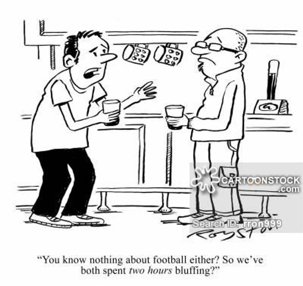 I like to yell random things at the T.V. to make it know that I like football, but the problem is I don’t know what I’m talking about half the time. But I find if you yell and you yell when other people yell, they tend to think you do, and eventually you become adopted into the football wolf pack.