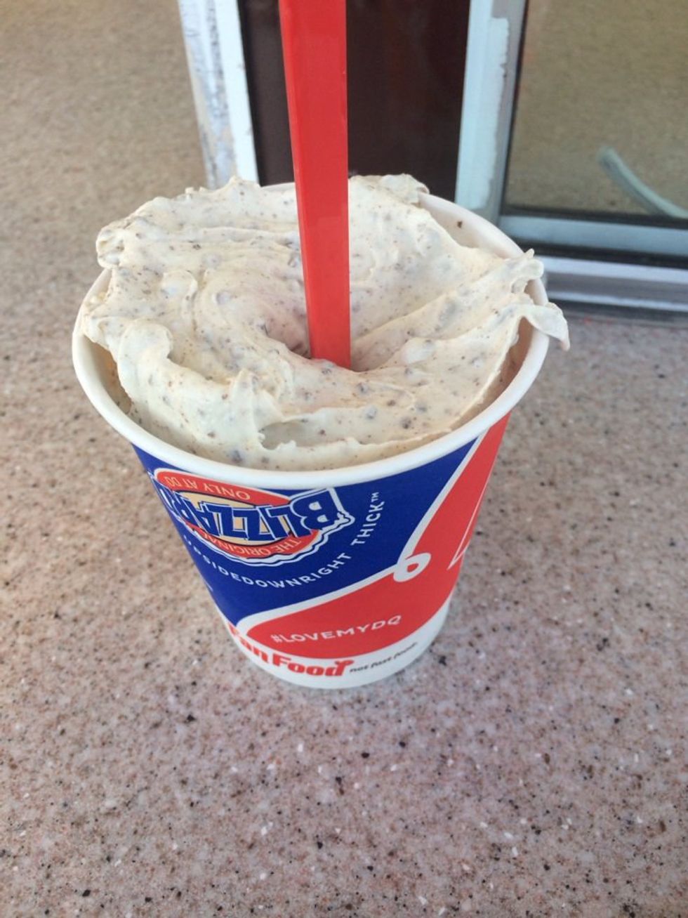 That's it. That's the blizzard. It's the most simple blizzard on this list! If you haven't figured out, it's basically just ice cream and Reese's pieces, but the simplicity is what make it so tasty, especially if Reese's pieces are your favorite candies. The only issues with this blizzard is that not all Dairy Queens have the candy for it (the one I work at does, though. It's the one on West Chester Pike in the shopping center with the Burger King and Giant. Come visit!)