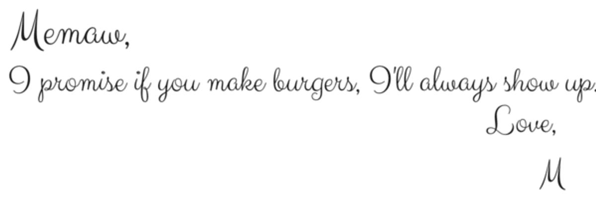 Also, if Memaw makes us all burgers and no one shows...someone's gettin' hurt.