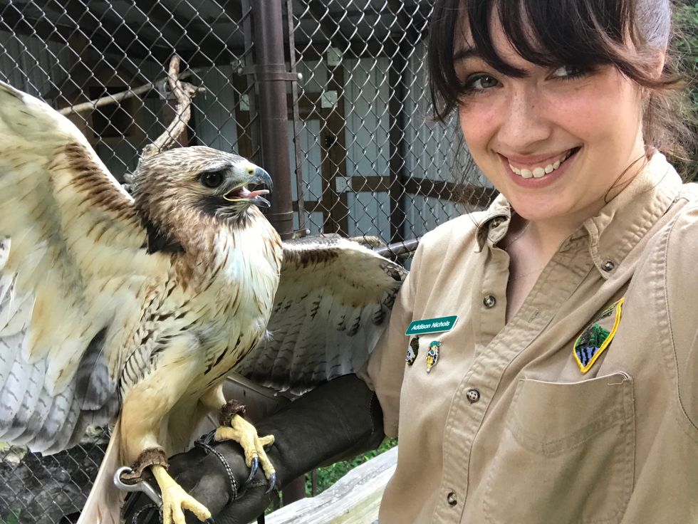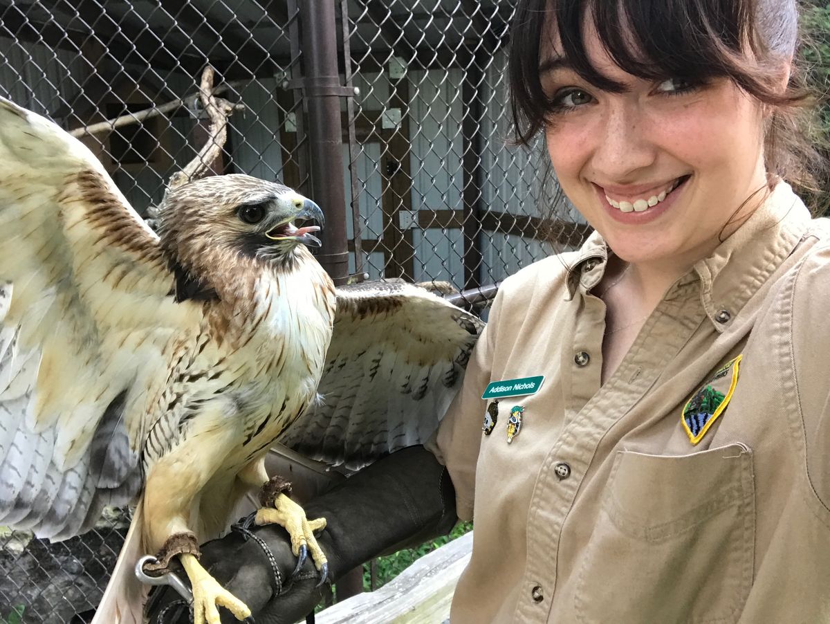 I am fortunate enough to have started my park career at a licensed birds of prey rehabilitation center. At any given time, we have several owls and hawks brought to us that are injured. It may be an adult owl hit by a car or a juvenile hawk that tried to fly a little too soon. Regardless, we all do our best to release these birds, no matter what the injuries may be. A lot of times, we are able to help these animals through their rough patches and release them into a safer area. These birds are kept out of the public eye; that way, they have the least amount of human interaction possible. However, sometimes there are instances where the bird is unable to make it through or is not able to be released back into the wild.
